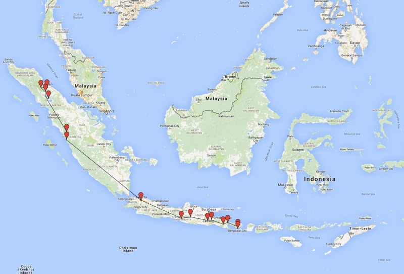 * Please note that when the group size is between 2 and 7 you will have one guide for Day 2 – 10 (for Sumatra) and another for Java and Bali (Day 10 – 21). For groups of 8 and above, there will be 1 guide staying with you all the time.